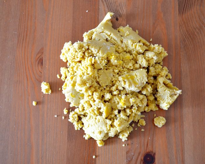 Для приготовления теста используем кухонный комбайн. В чашу миксера положите муку, кусочки охлажденного сливочного масла, яичные желтки, мелко натертую цедру половины лимона, сахарную пудру и щепотку соли. Включите комбайн и в течение нескольких секунд измельчите все до состояния мокрой крошки.