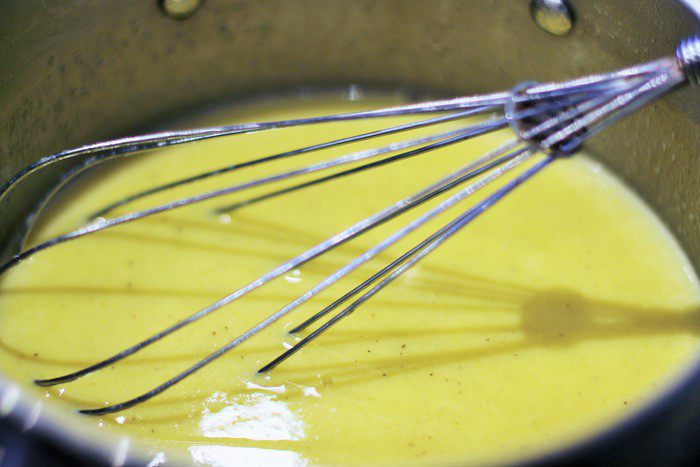 Добавьте сливочное масло и перемешайте. Варите на среднем огне, непрерывно помешивая, до загустения. Приблизительно 10-15 минут.