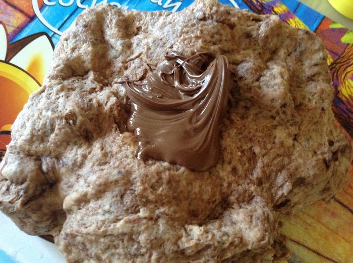 В большую часть добавить какао (2 ст. ложки) и Нутеллу (1 ст. л). Вымесить шоколадное тесто.