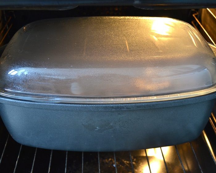Накрываем кастрюлю крышкой и ставим в разогретую до 190°C духовку. Забываем о мясе на 2-2,5 часа!