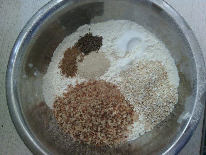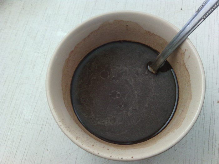Влить квас, какао с медом и кофе, растительное масло - замесить тесто. Выложить тесто на присыпанную мукой поверхность и вымесить его не менее 10 мин. Положить тесто в миску, смазанную маслом, накрыть полотенцем и оставить на 2-2,5 ч. в теплое место. За это время тесто подойдет, и его объем увеличится вдвое.