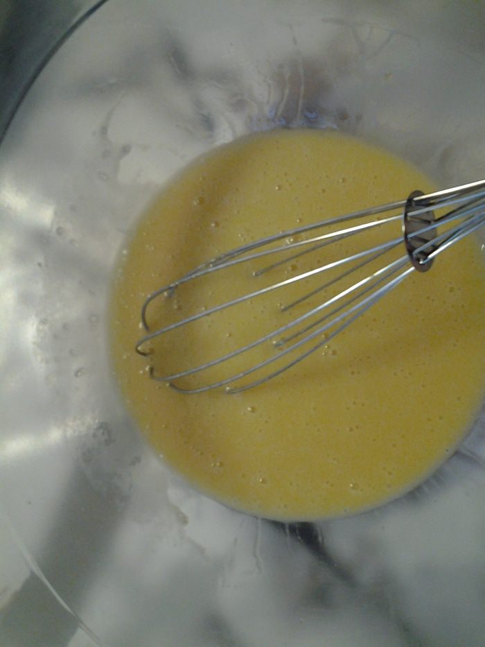 Растопить сливочное масло, смешать с оливковым, добавить яйца, сахар. Перемешать.