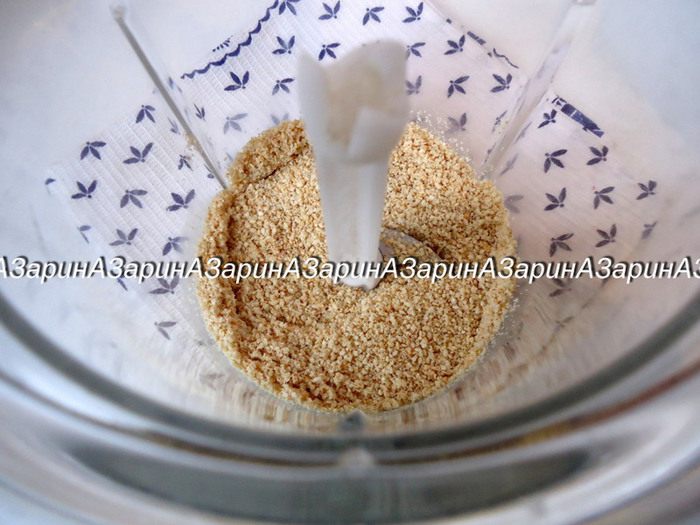 Для пирога кунжутное семя обжарить на сухой сковороде до золотистого цвета и измельчить.