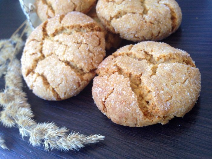 Из теста сформировать шарики размером с грецкий орех, обвалять хорошо в сахаре и выложить на противень, застеленный бумагой для выпечки, на расстоянии 5 см. друг от друга (это важно!). Каждый шарик чуть придавить!
