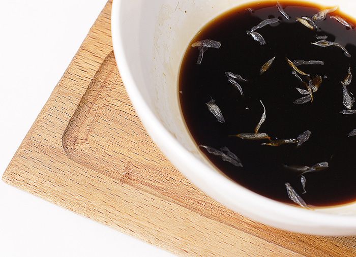 Выкладываем в форму для приготовления, заливаем приготовленным маринадом и посыпаем сверху кунжутом. Оставляем мариноваться на 20 минут.