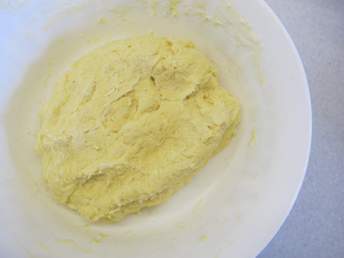 Творог растереть с маслом. Добавить яйцо и желток. Все перемешать.