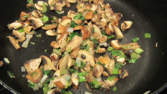 2. Грибы подойдут любые. И обычные шампиньоны, и лесные (с ними вообще супер получается), и замороженные. У меня были коричневые шампиньоны.
