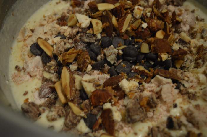 Отложить 1/4 кремf на топпинг, убираем его в холодильник под пленкой или крышкой.