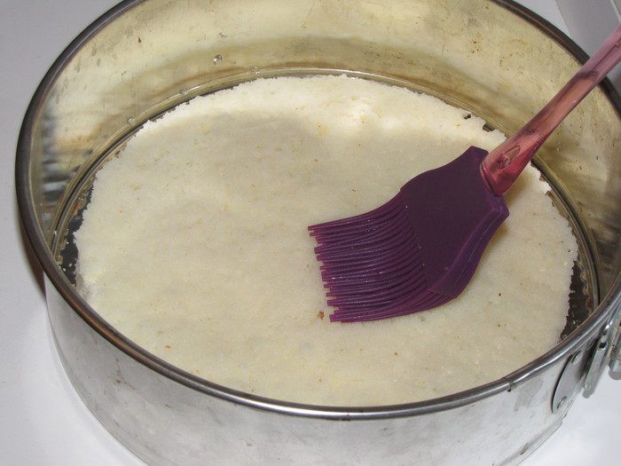 Желатиновые пластины залить водой, когда он будет готов, взять его рукой и отжать. Положить в другую емкость и нагреть до растворения. Следить, чтобы желатин растворился, но не кипел. Добавить ложку полученного крема и перемешать, этим мы его как бы "закалим".
