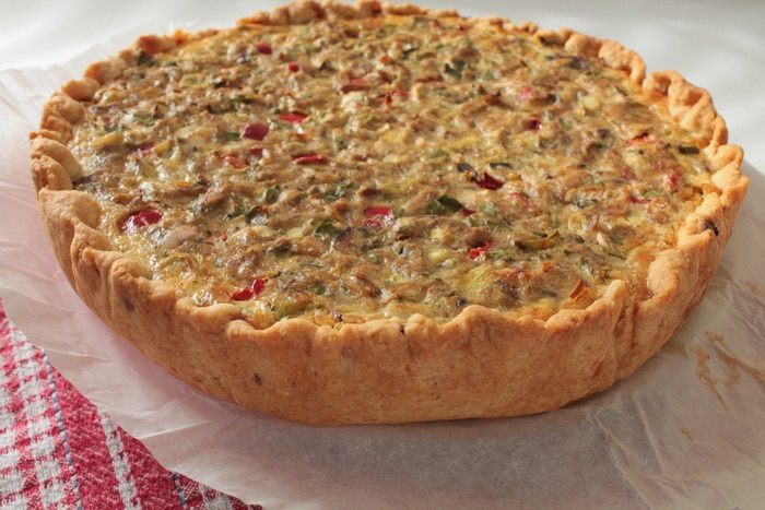 Выпекать при 180 градусах 45 минут,начинка должна схватиться,а тесто зарумяниться.Готовый пирог оставить в приоткрытой духовке минут на десять,затем достать и остудить на решетке.Приятного вам аппетита!