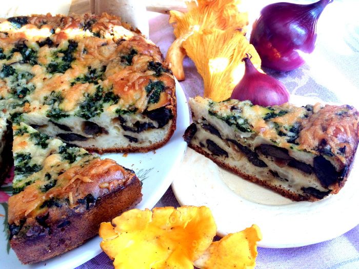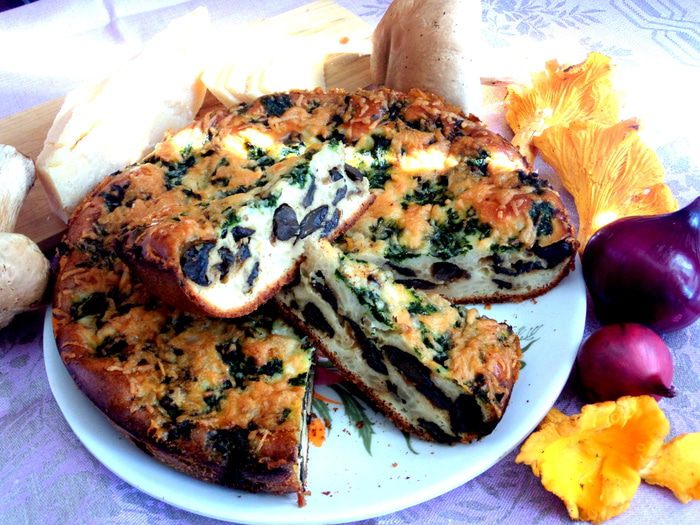 Такой пирог можно испечь и зимой из размороженных грибов и даже вымоченных солёных.