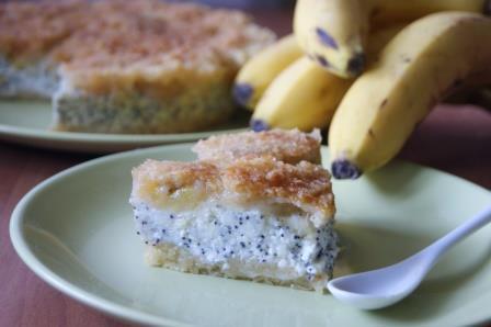 Творожный пирог с маком и карамелизированным бананом