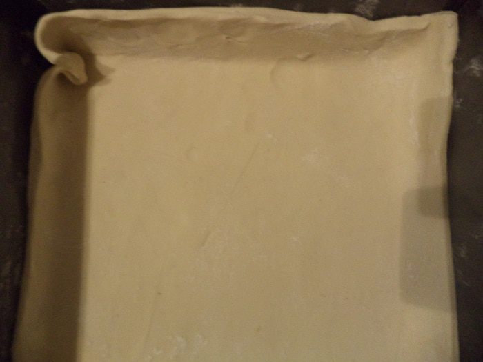 Слоёное тесто разморозить, раскатать тонким слоем. Вырезать из теста 2 пласта, один чуть больше, другой чуть меньше.