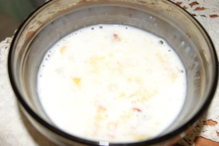 Приготовить заливку. Все ингредиенты соединить в сотейнике, довести до кипения, слегка остудить.