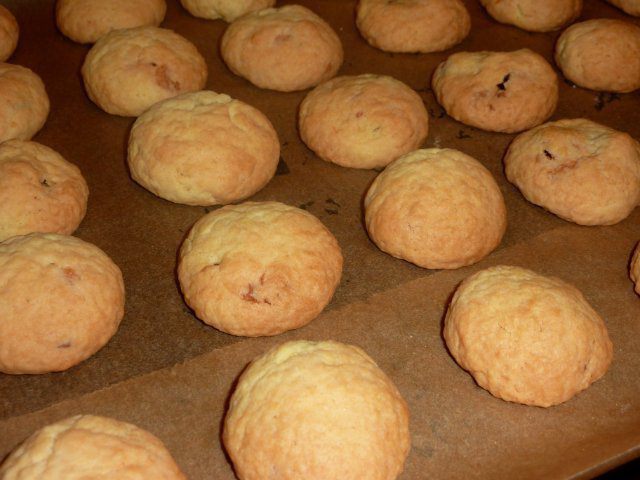 Из муки, яиц, сахара, разделителя и масла замесить тесто. Сформировать из него толстые колбаски и убрать в холодильник на пару часов.