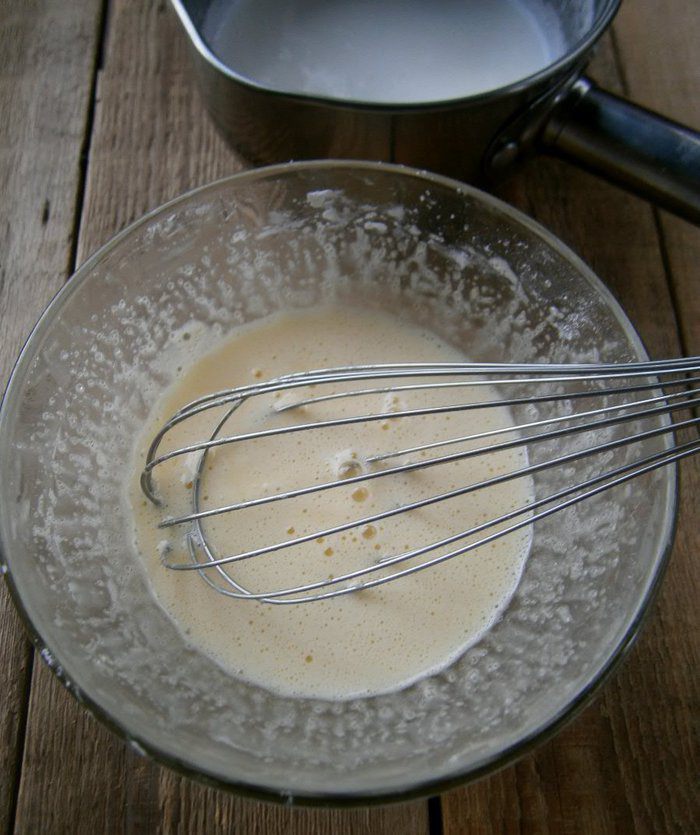 Перелить массу обратно в кастрюльку и варить на небольшом огне, постоянно помешивая. Снять с огня, ввести мягкое сливочное масло и перемешать до однородности. Дать крему полностью остыть
