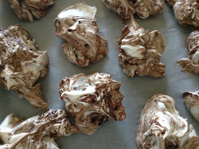 Выложить белки на пергамент и отправить в духовку на 50-60 минут при 130*.
