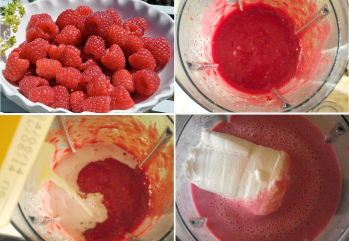 Бокалы отправляем в морозильную камеру охладиться. Малину взбиваем в блендере с сахаром или медом. Затем уменьшаем обороты миксера и тонкой струйкой вливаем молоко. Взбиваем около 1 минуты. Затем увеличиваем обороты и добавляем мороженое. Взбиваем до 3-х минут на максимальной скорости.