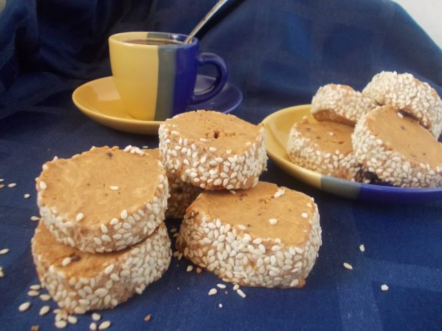 Вредставляю вашему вниманию,чудесное печенье. Оно хрустящее,но не твердое,в меру сладкое и емеет вкусный кофейно-карамельный аромат,идеально к чашечке кофе. Можно вместо кунжута использовать орехи,мак,или просто сахар. Готовится довольно легко и если не считать время,проведенное в холодильнике,ещё и быстро. Тесто можно приготовить с вечера,а утром уже печь печенюшки и подавать родным к завтраку.