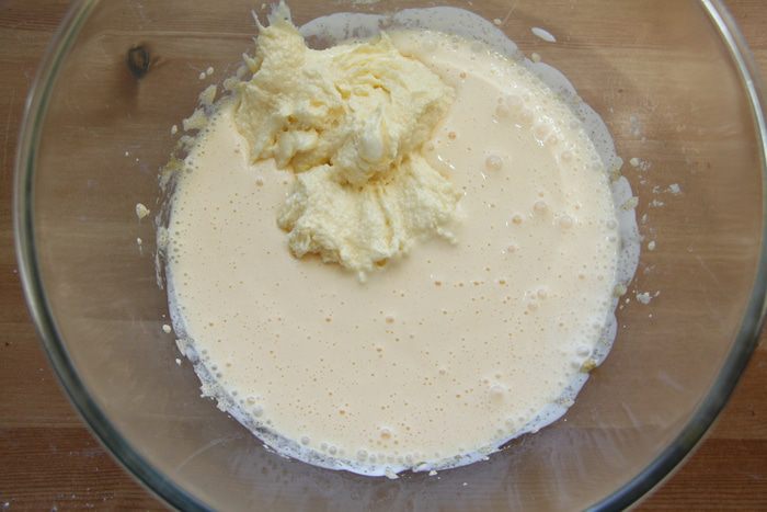 К яичной смеси добавить йогурт (или некислую сметану 10-15%).