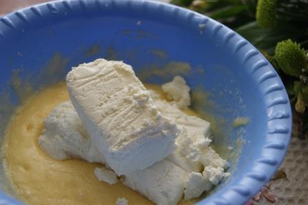 Поочередно добавлять молоко и муку, смешанную с разрыхлителем.