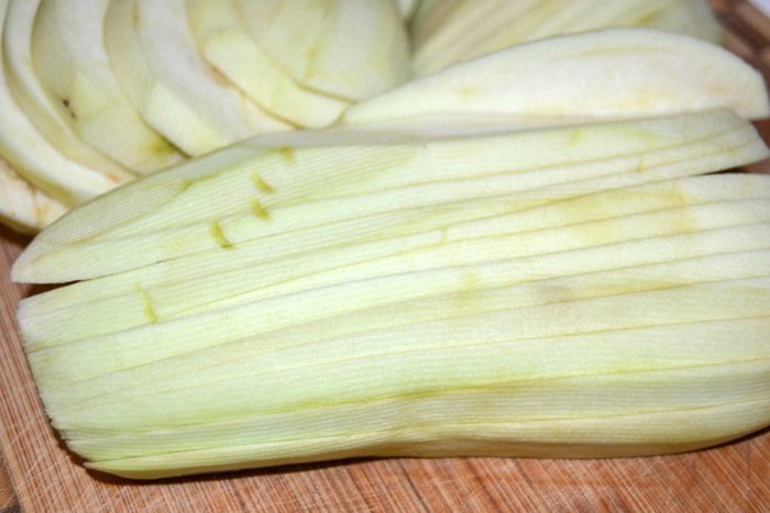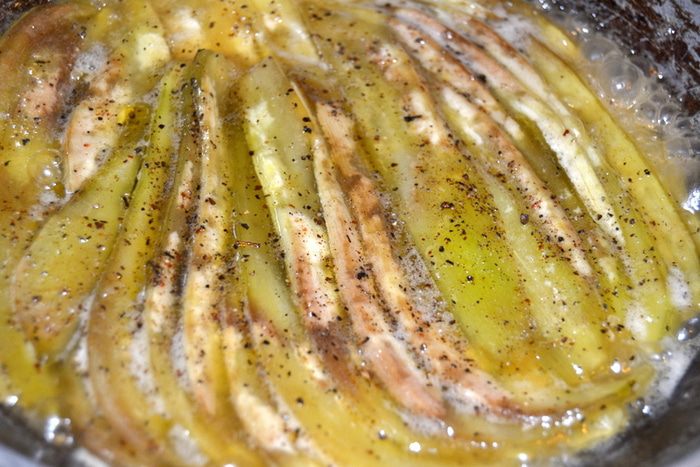 В сковороду выложить баклажан в один слой. Готовить баклажан на среднем огне до образования карамели. Примерно 20 минут.