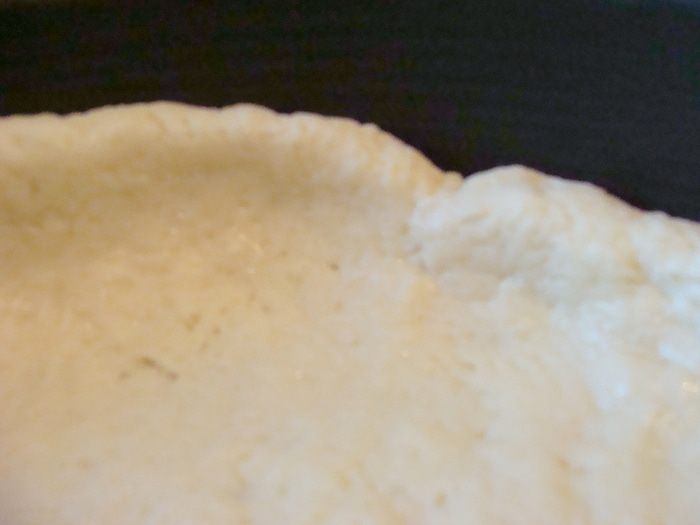 Форму я использую разъемную, диаметром 26 см. Смазывать ее не нужно. Тесто размять в руках, сформировать лепешку, положить в форму и придавливая, пальцами, распределить тесто равномерно, постепенно поднимая края вверх.