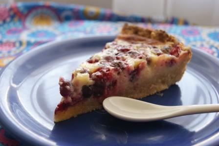 Тарт с брусникой и запеченным ганашем из белого шоколада