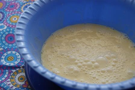 Добавить миндальную и пшеничную муку, перемешать в крошку.