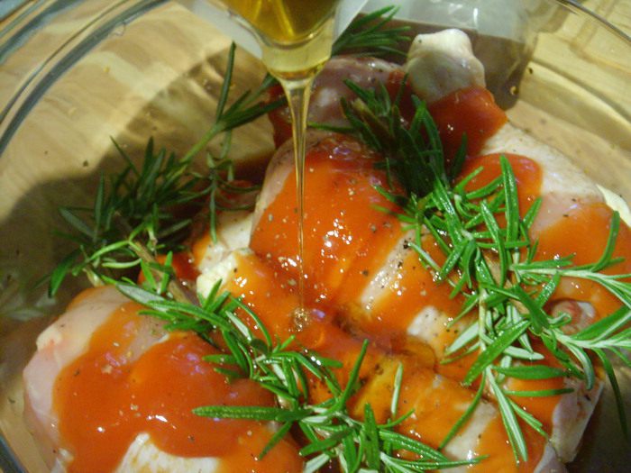 Куриные голени, т.к. в списке их не нашлось, а у меня именно они))) помыть, посолить, поперчить, залить кетчупом, соевым соусом, оливковым маслом.
