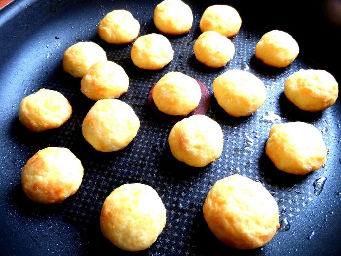 Смочить пальцы в растительном масле и взять ложкой шарик теста размером с грецкий орех.