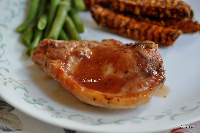 Сверху выложить свиные отбивные, они должны полностью утопать в этой смеси. Поставить в духовку на 45 мин.