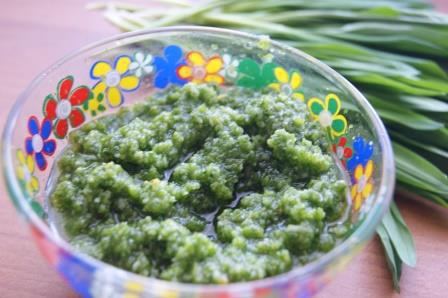 Приготовить песто по рецепту Ярославы.http://www.edimdoma.ru/retsepty/66393-pesto-iz-cheremshi.