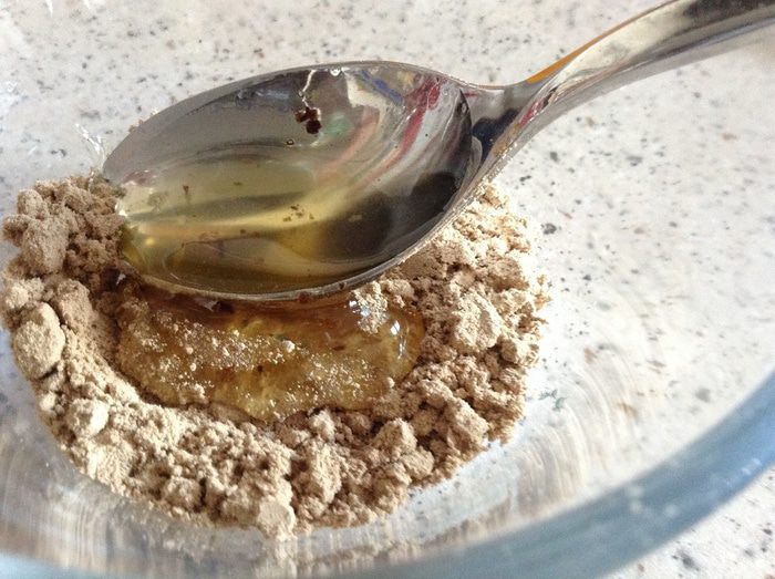 Смешать с 1 столовой ложкой меда и 0.5 ч. л. воды ( холодной, кипяченой).