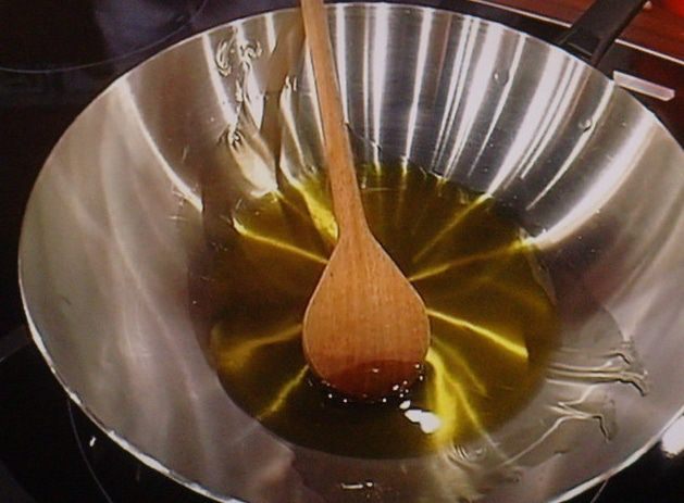 Подготовить овощи: спаржу почистить, отрезать плотные концы, порезать на бруски в 2 см. Зелёный лучок промыть и так же порезать наискосок на бруски примерно такого же формата. Оставшийся имбирь натереть на мелкой тёрке, а оставшийся чеснок мелко покрошить. Картошку очистить и нарезать.