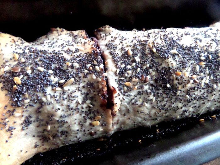 Продолжая череду постных блюд,не обойду стороной и сладкое))) Я уже проверяла,что из тонкого лаваша отлично можно закрутить штрудель! Но я делала его раньше с яблоками и арахисовой пастой,а теперь решила добавить к яблокам и орешкам (это же классика!) мак и для более яркого цвета и вкуса черничное варенье)))