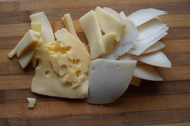У меня было 2 вида козьего сыра и полутвердый эмменталь.