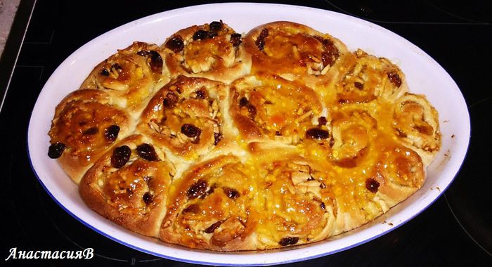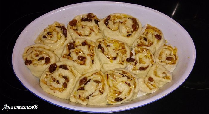 Растопить масло, влить оставшееся молоко. Добавить яйцо с молоком к тесту, месить около 5 минут и, накрыв, снова дать подойти 30 минут.