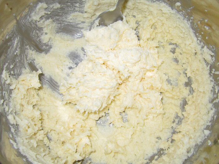 Взбить размягченное сливочное масло, сахар и ванильный сахар.