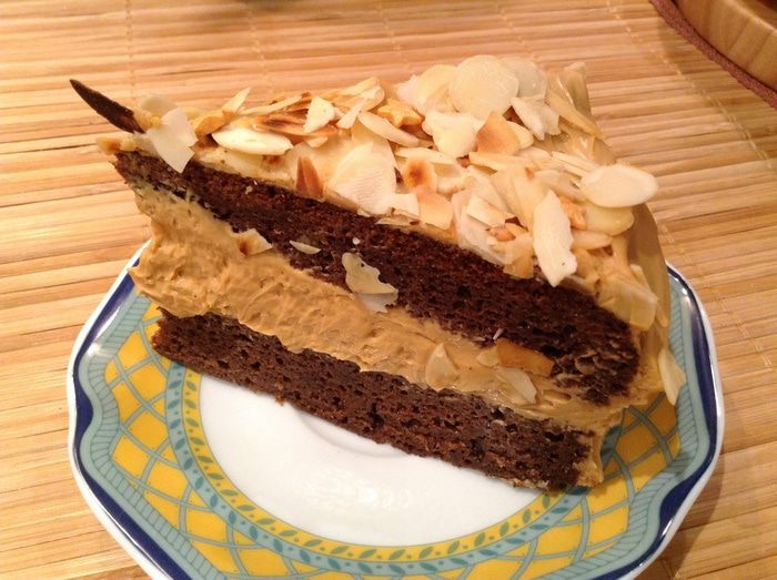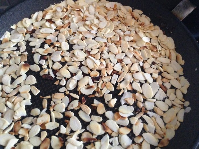 Смешать маскарпоне и сгущенку (всегда покупаю белорусскую). добавить в крем 20 г. миндальных лепестков.