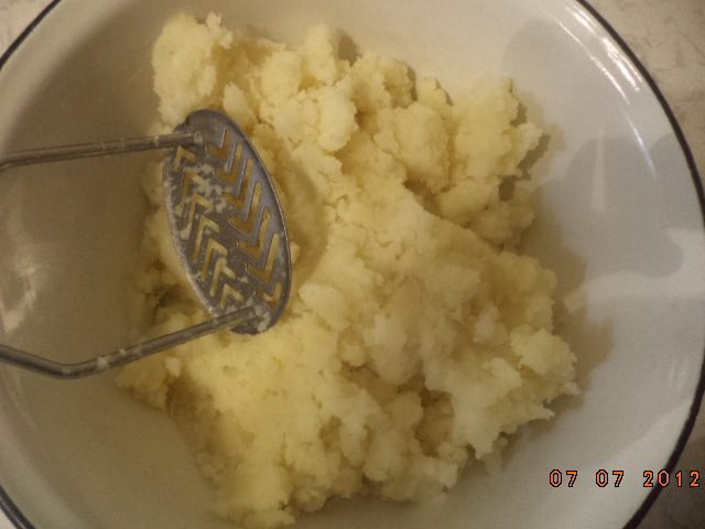 Добавить в остывшее пюре 3 яйца, взбитые венчиком, муку, немного посолить и замесить мягкое тесто.