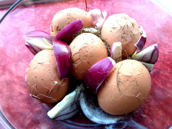 Теперь самое забавное в рецепте! Остывшие в холодной воде яйца нужно хорошенько побить ложкой,чтобы были трещинки по всей поверхности)))