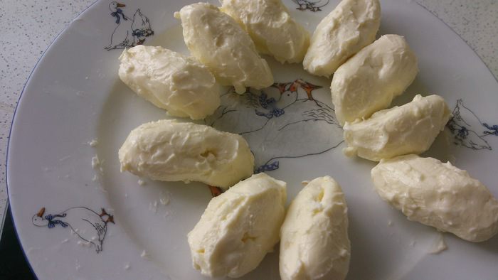 Сливочное масло поделить на 11 продолговатых кусочков и положить в морозилку на 15-20 минут.