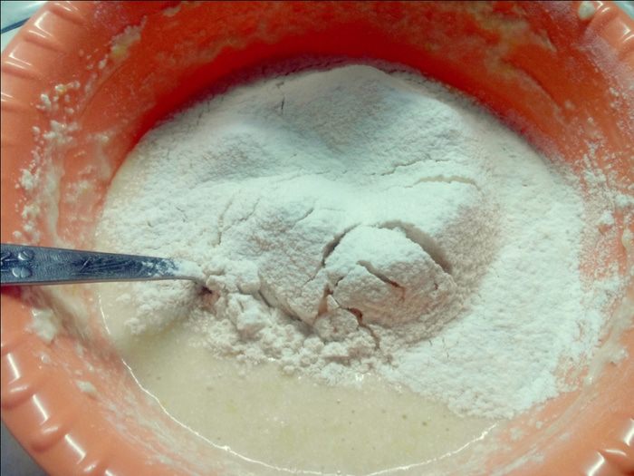 Добавляем цедру, соду и гасим её соком лимона. Всё хорошо вымешиваем.