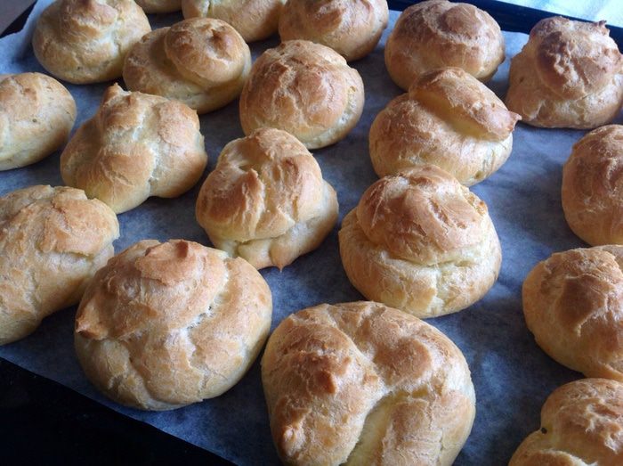 Воду, масло, соль, сахар доводим до закипания....добавляем муку ...мешаем до отставания теста от стенок кастрюльки...немного остужаем и вводим яйца...взбиваем до однородности.