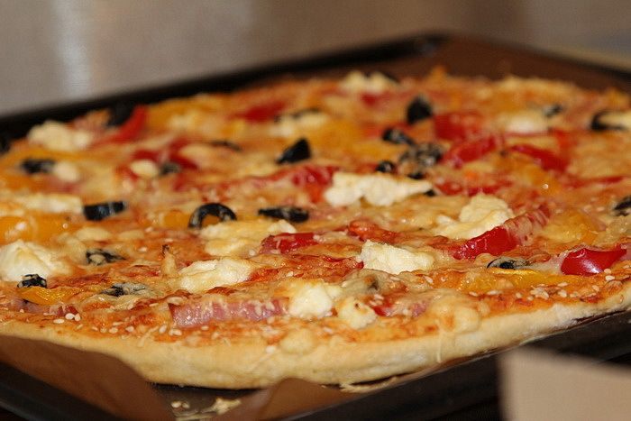 Очень люблю пиццу! Но очень давно её не делала. Участие в битве – хороший повод наверстать упущенное! Предлагаю вариант с ветчиной, разноцветным болгарским перцем и творожным сыром. Вкусно и нарядно! Приятного аппетита!