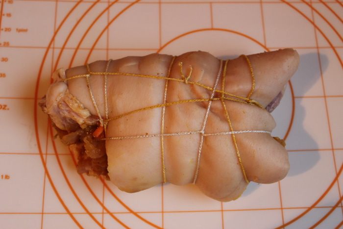 Берем кастрюлю побольше, кладем туда рульку, заливаем нашим маринадом. Кладем столовую ложку соли, ставим на огонь. Я варила 1,30 час на медленном огне, мне было достаточно, но вы смотрите, может понадобится и дольше. Если надо доливаем воду во время варки. Готовую рульку протыкаем острым ножом аккуратно, если выйдет чистый сок, то она готова.