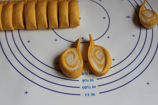 Итак, я взяла готовое детское пюре. Баночку 180 г (можно, конечно, самим сделать пюре). Прогрела его в микроволновке. Добавила туда 1,5 ч. л. дрожжей, 50 г растопленного масла, 40 г сахара, соль 0,5 ч. л., половинку яйца и муки 300 г. Замесила тесто. (Сразу скажу что булочки не сильно сладкие получаются, кто любит послаще, добавьте сахар.) Замесила тесто.