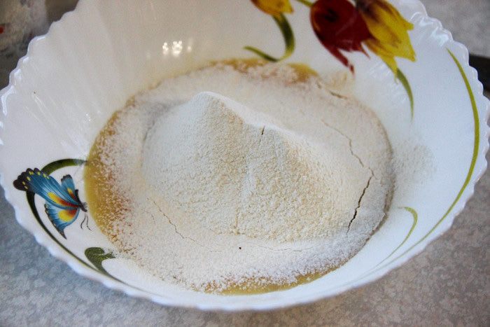 Когда верхний слой пирога слегка подрумянится, украсим его кунжутом и смажем желтком.