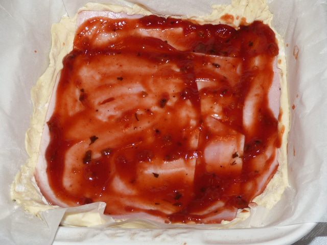 Смазать ветчину 2 ст. л. любого томатного соуса.
